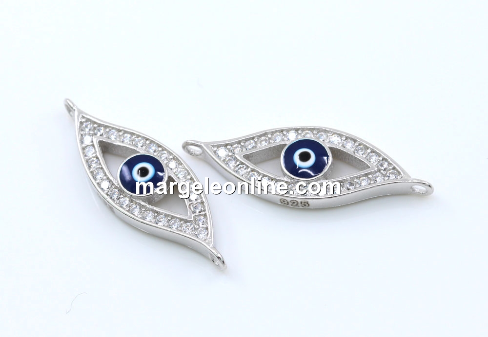 Link Evil eye cu cristale, argint 925 placat cu rodiu, 20mm - x1