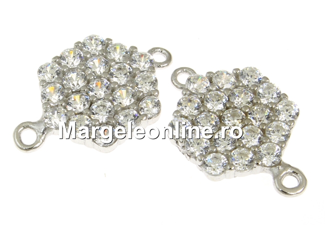 Link cu cristale, argint 925 placat cu rodiu, marcat, dimensiune: 13.5x8.5mm. Pretul este pentru 1 bucata.
