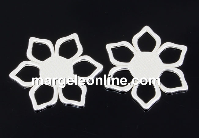 Link floare, argint 925, dimensiune: 16.6mm, se poate folosi si ca baza pentru cabochon 6mm. Pretul se refera la 1 bucata.