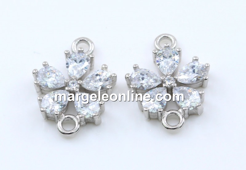 Link floare, argint 925 placat cu rodiu, marcat, prevazut cu 5 cristale clear, dimensiune: 15x10.5mm. Pretul este pentru 1 bucata.