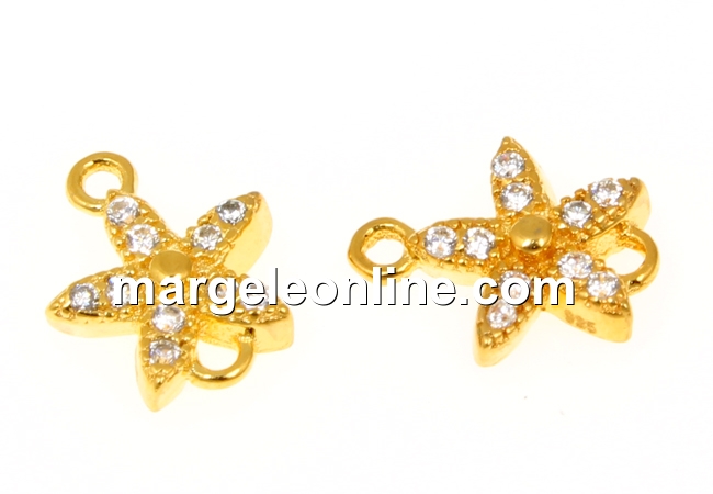 Link floare cu cristale, argint 925 placat aur, dimensiune: 9.5x7.5mm. Pretul se refera la 1 bucata.