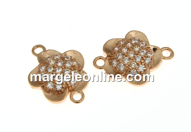 Link floare cu cristale, argint 925 placat aur roz, 12mm - x1