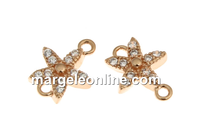 Link floare cu cristale, argint 925 placat aur roz, 9.5mm - x1