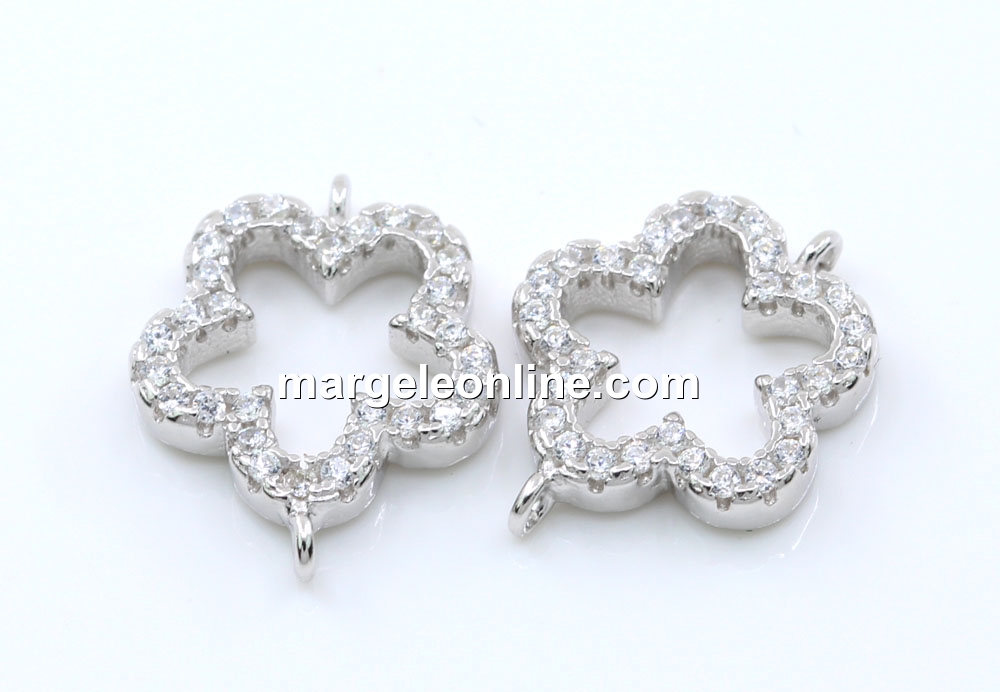 Link floare cu cristale, argint 925 placat cu rodiu, 14mm - x1