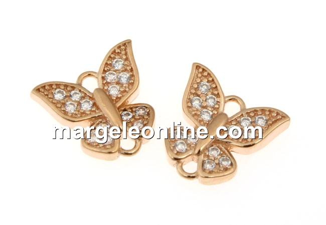 Link fluture cu cristale, argint 925 placat cu aur roz, 9mm - x1