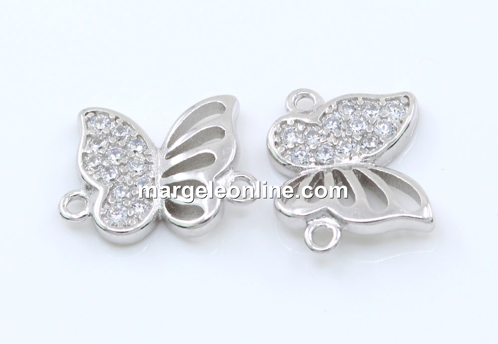 Link fluture cu cristale, argint 925 placat cu rodiu, 12mm - x1