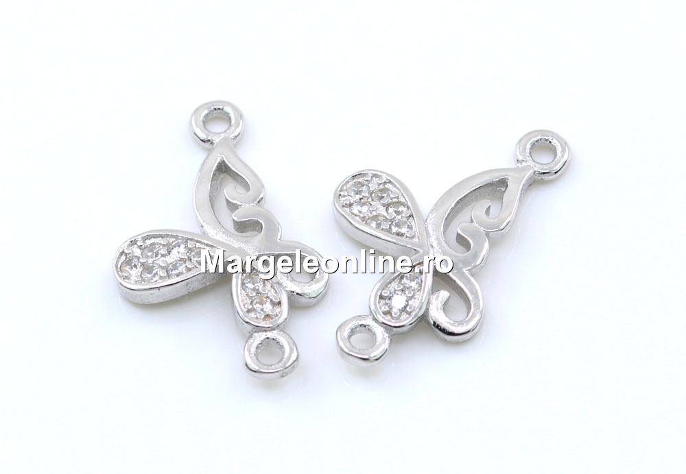 Link fluture cu cristale, argint 925 placat cu rodiu, 16mm - x1