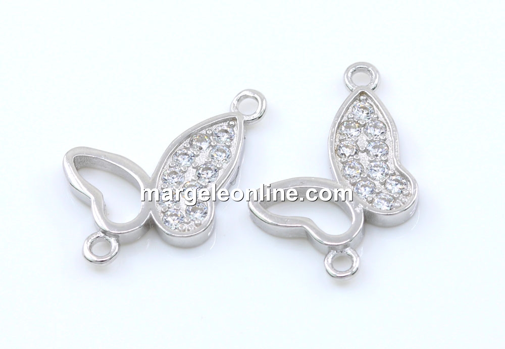 Link fluture cu cristale, argint 925 placat cu rodiu, 17mm - x1