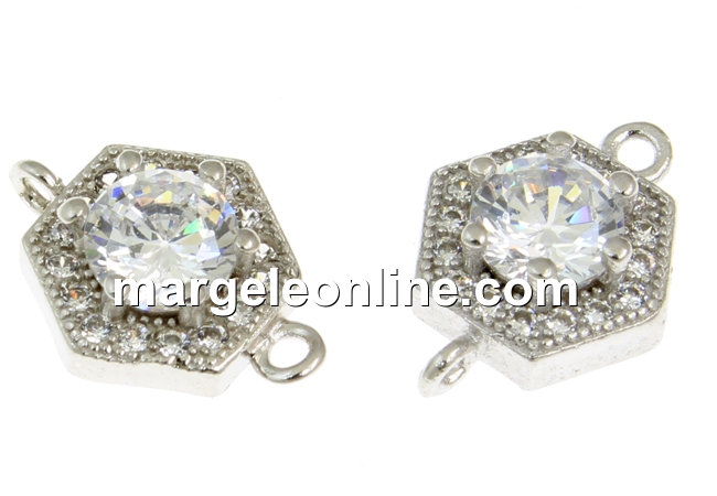 Link cu cristale, argint 925 placat cu rodiu, dimensiune: 13x9mm. Pretul este pentru 1 bucata.