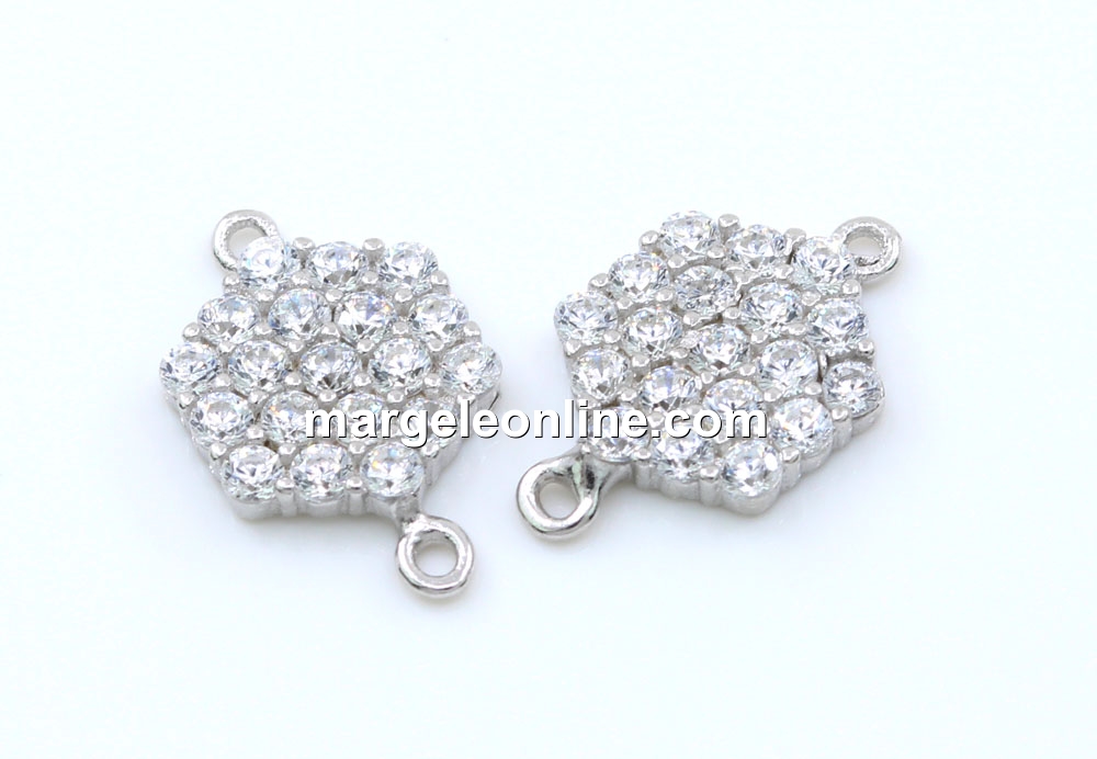 Link hexagon cu cristale, argint 925 placat cu rodiu, 13mm - x1