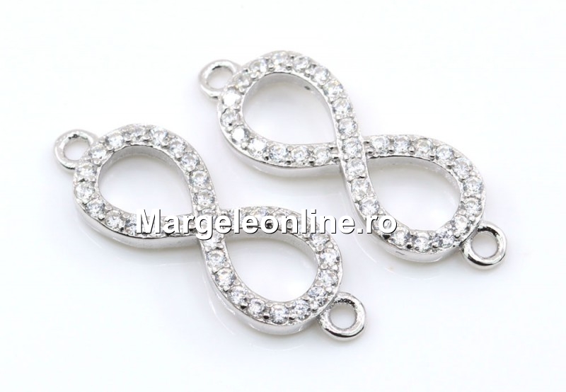Link cu cristale din argint 925 placat cu rodiu, marcat, dimensiune totala: 20x7mm. Pretul este pentru 1 bucata.