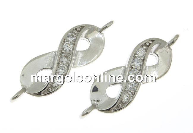 Link infinit cu cristale, argint 925 placat cu rodiu, marcat, dimensiune: 18x6mm. Pretul se refera la 1 bucata.