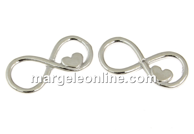 Link infinit cu inimioara, argint 925 placat cu rodiu, marcat dimensiune: 16.5x7.5mm. Pretul se refera la 1 bucata.
