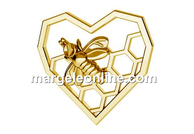 Link inima cu albinuta, argint 925 placat cu aur, 15mm - x1