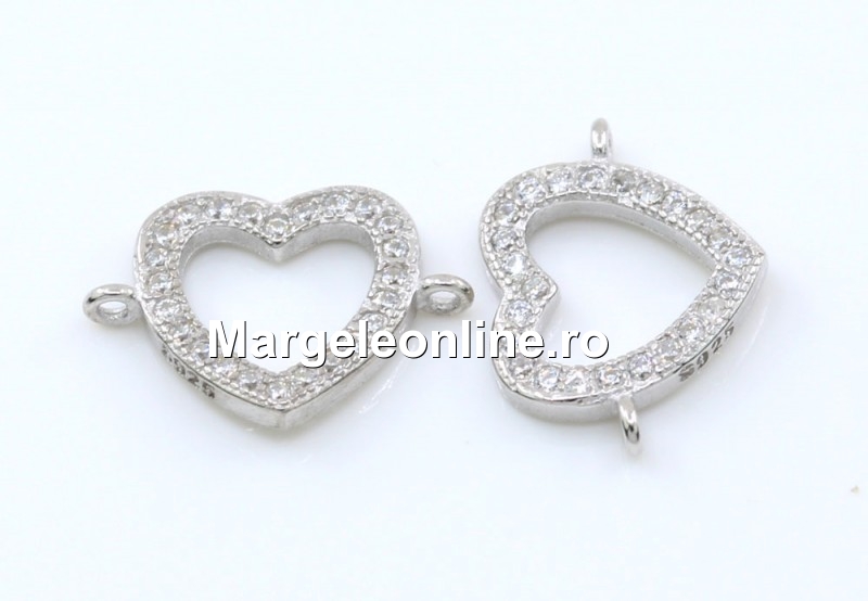 Link inima cu cristale, argint 925 placat cu rodiu, 12.5mm - x1