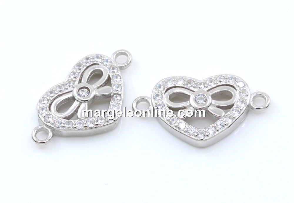 Link inima cu fundita si cristale, argint 925 placat cu rodiu, 16mm - x1