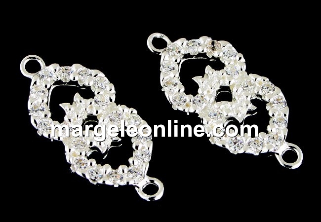 Link inimioare cu cristale Swarovski, argint 925, marcat, dimensiune: 16.5x7mm. Pretul se refera la 1 bucata.