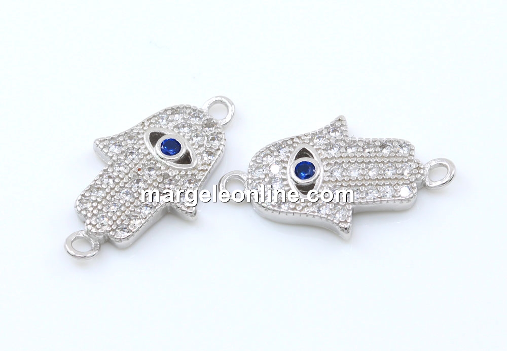 Link Mana lui Fatima (Hamsa), argint 925 rodiat, marcat 925, dimensiune: 15.5x9mm, marime orificii prindere: 1mm. Pretul este pentru 1 bucata.