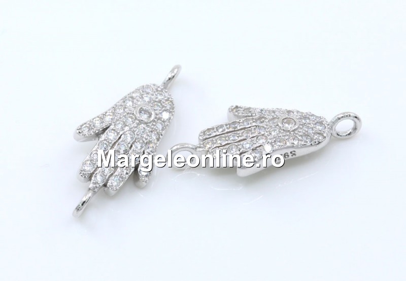 Link Mana lui Fatima cu cristale, argint 925 placat cu rodiu, marcat, dimensiune: 19x8mm. Pretul se refera la 1 bucata.
