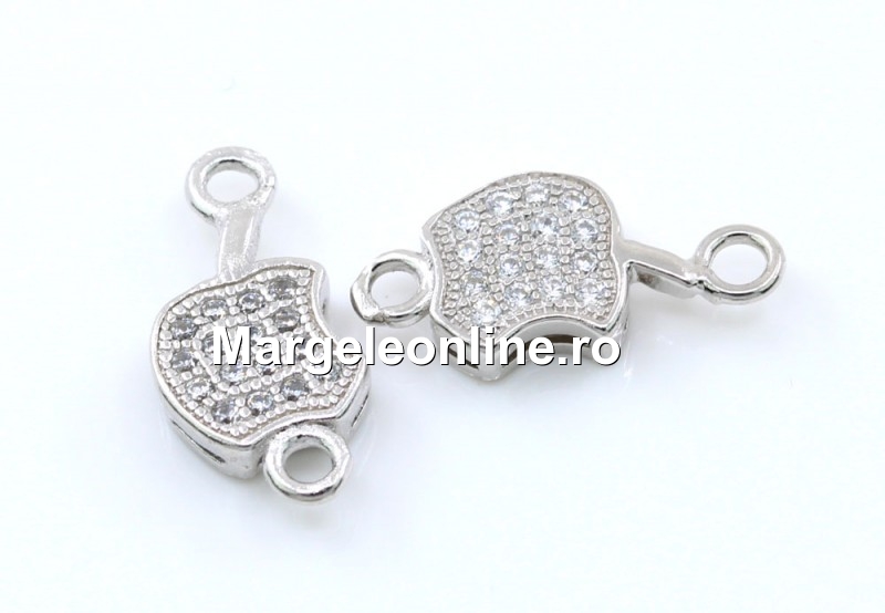 Link mar cu cristale, argint 925 placat cu rodiu, marcat, dimensiune: 14x6.5mm. Pretul este pentru 1 bucata.
