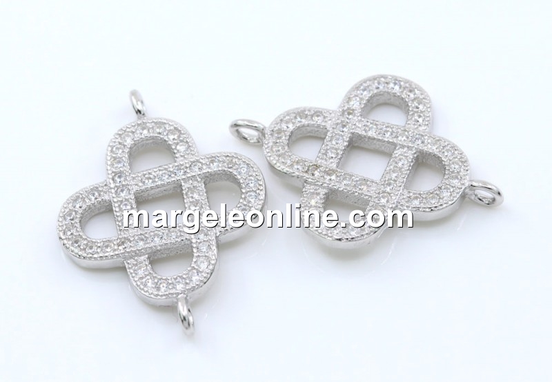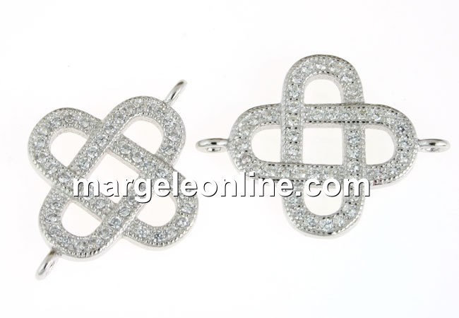 Link nod celtic cu cristale zirconia, din argint 925 placat cu rodiu, marcat, dimensiune: 21x15.5mm. Pretul este pentru 1 bucata.