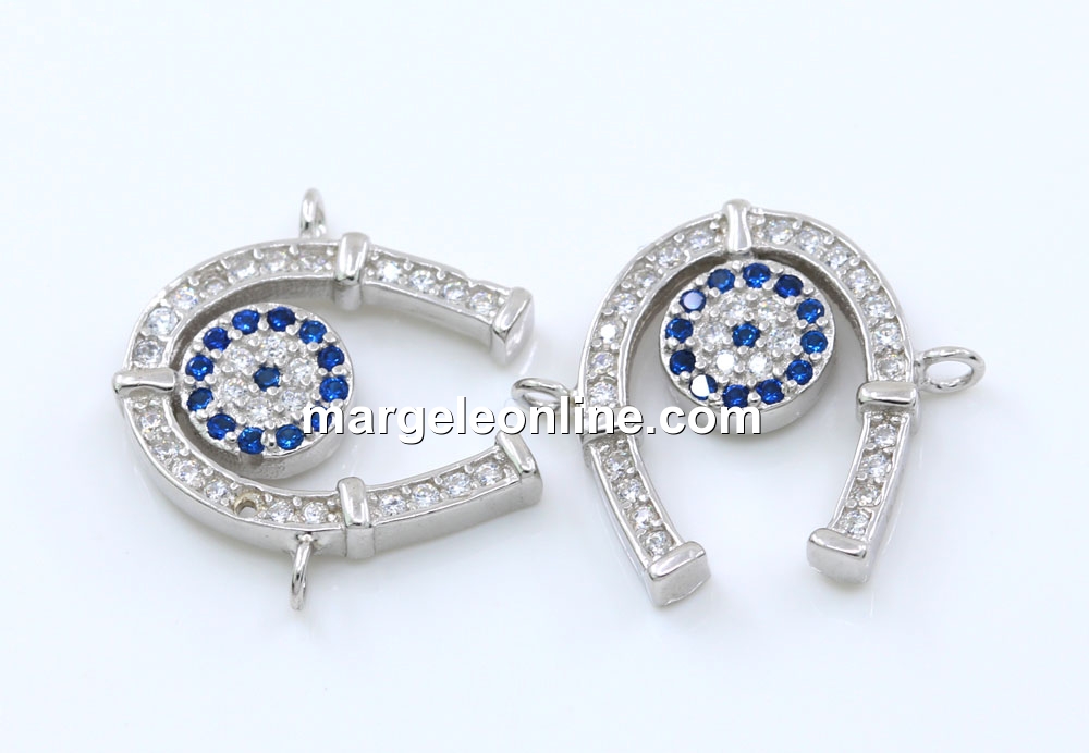 Link potcoava cu cristale, argint 925 placat cu rodiu, 17.5mm - x1