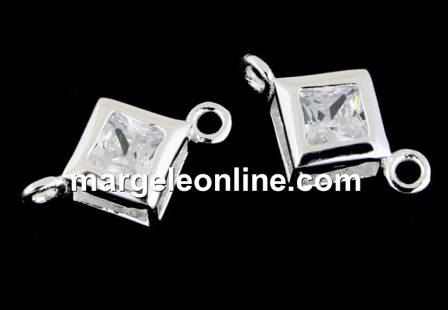 Link romb cu cristale Swarovski, argint 925, marcat, dimensiune: 11x6.5mm. Pretul se refera la 1 bucata.