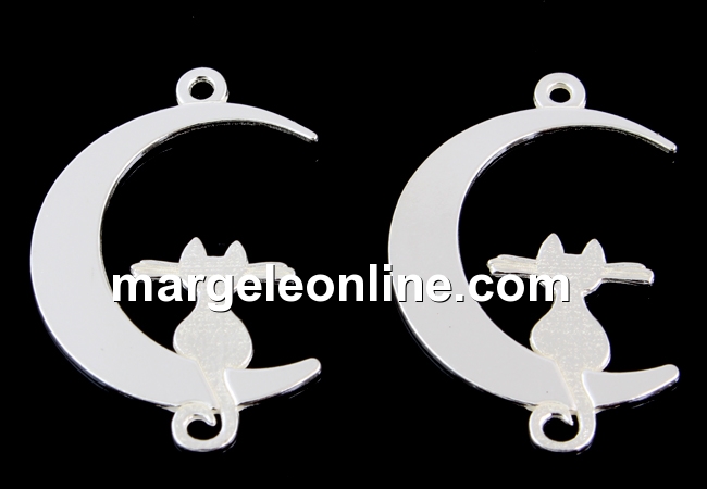 Link semiluna cu motan argint 925, 22mm - x1