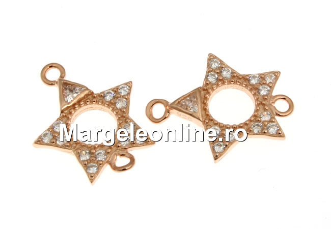 Link stea cu cristale, argint 925 placat cu aur roz, 13mm - x1