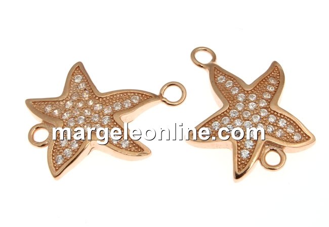Link stea de mare cu cristale Swarovski: accesorii bijuterii argint 925 placat cu aur roz, dimensiune 17.6x13.8mm. Pretul se refera la 1 bucata.