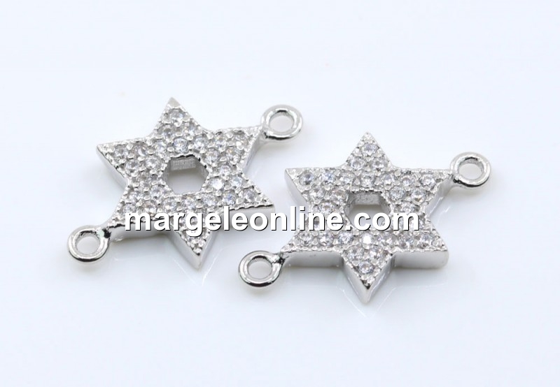 Link Steaua lui David cu cristale, argint 925 placat cu rodiu, dimensiune: 16x9.5mm. Pretul se refera la 1 bucata.