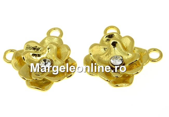 Link trandafir cu cristal argint 925 placat aur, 12.5mm - x1