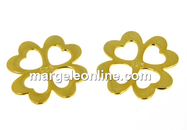 Link trifoi: accesorii bijuterii argint 925 placat cu aur, marcat, dimensiune: 12.5x12.5x0.5mm. Pretul se refera la 1 bucata.