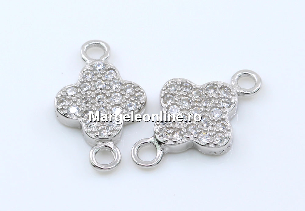 Link trifoi cu cristale, argint 925 placat cu rodiu, 13mm - x1