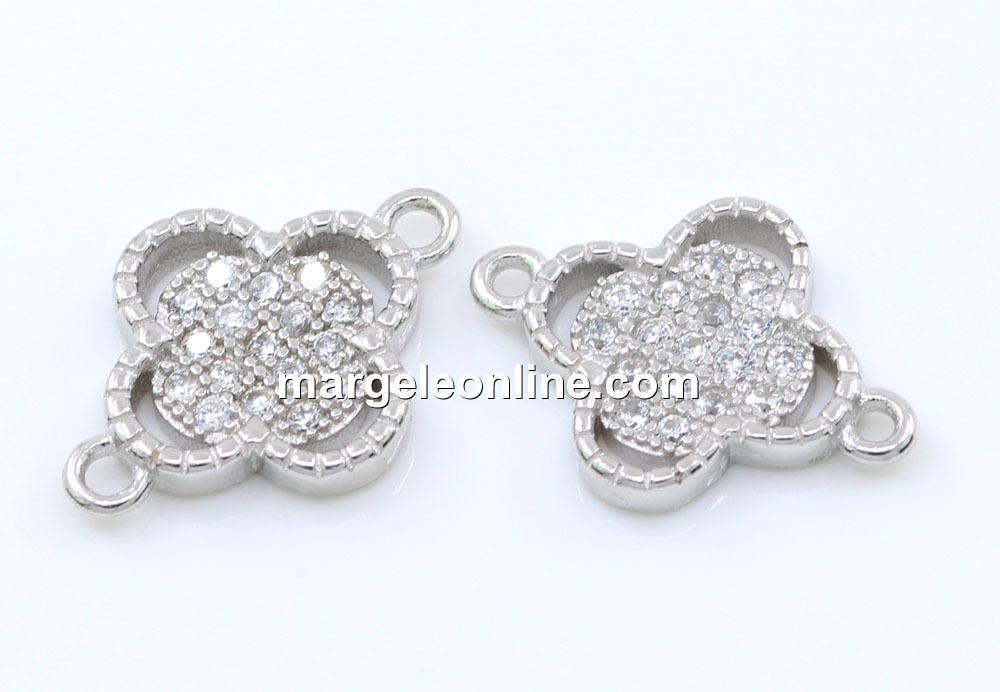 Link trifoi cu cristale, argint 925 placat cu rodiu, 13mm - x1