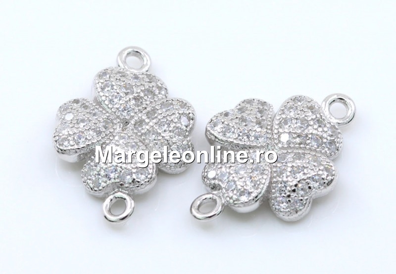 Link cu cristale, argint 925 placat cu rodiu, marcat, dimensiune: 14x10x2.8mm. Pretul este pentru 1 bucata.