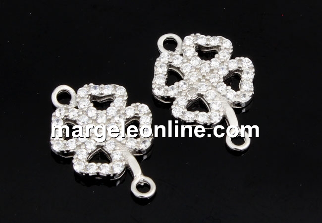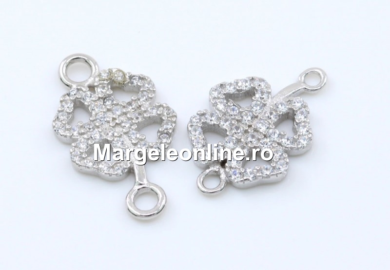 Link trifoi cu cristale, argint 925 placat cu rodiu, 14mm  - x1