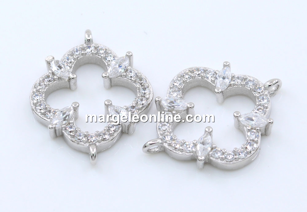 Link trifoi cu cristale, argint 925 placat cu rodiu, 15mm - x1