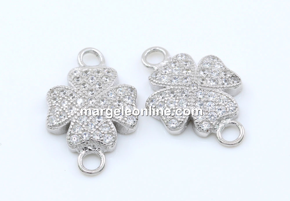 Link trifoi cu cristale, argint 925 placat cu rodiu, 15mm - x1