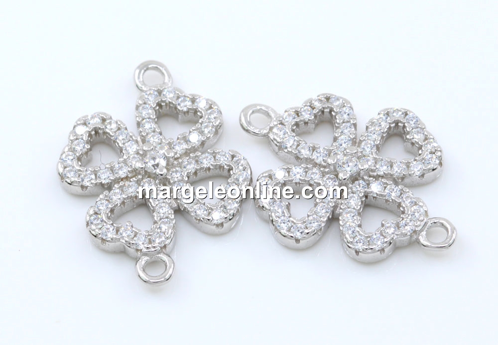 Link trifoi cu cristale, argint 925 placat cu rodiu, 17mm - x1