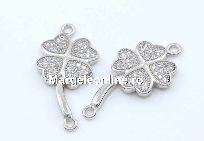 Link trifoi cu cristale, argint 925 placat cu rodiu, marcat, dimensiune: 24x13mm. Pretul este pentru 1 bucata.