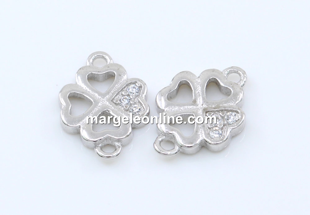 Link trifoi cu cristale, argint 925 placat cu rodiu, 9.5mm - x1