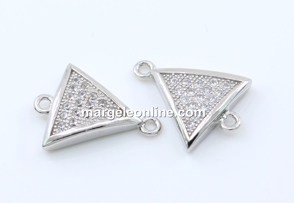 Link triunghi cu cristale, argint 925 placat cu rodiu, 14mm - x1