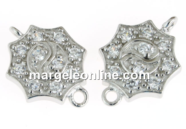Link ying yang din argint 925 placat cu rodiu si cristal zirconia, dimensiune: 14.5x10mm. Pretul este pentru 1 bucata.