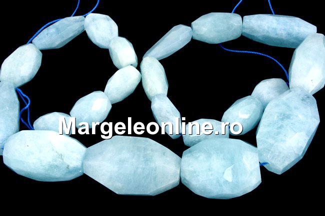 Margele acvamarin natural, forma: fatetat, marime: 14-31x10-20mm. Pretul este pentru 1 sirag fara cheita de 43cm.