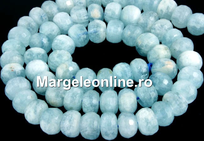 Margele acvamarin, forma: rondele fatetate, marime: 8.5x5.5-6.5mm. Pretul este pentru un sirag de 40-41cm.