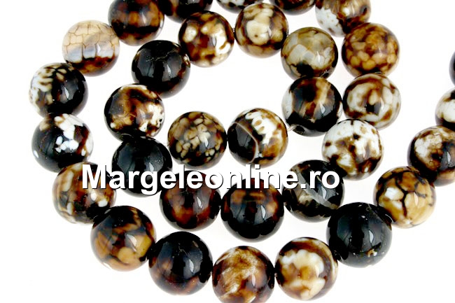 Margele agate crab fire, nuante bej - maro intens, forma: rotund, marime: 12mm. Pretul este pentru un sirag de 38cm.