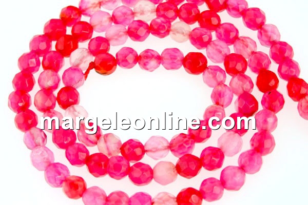 Margele agate crab fire, culoare: roz, forma: rotund multifatetat, marime: 4mm, lungime sirag: 37-38cm. Pretul este pentru un sirag.