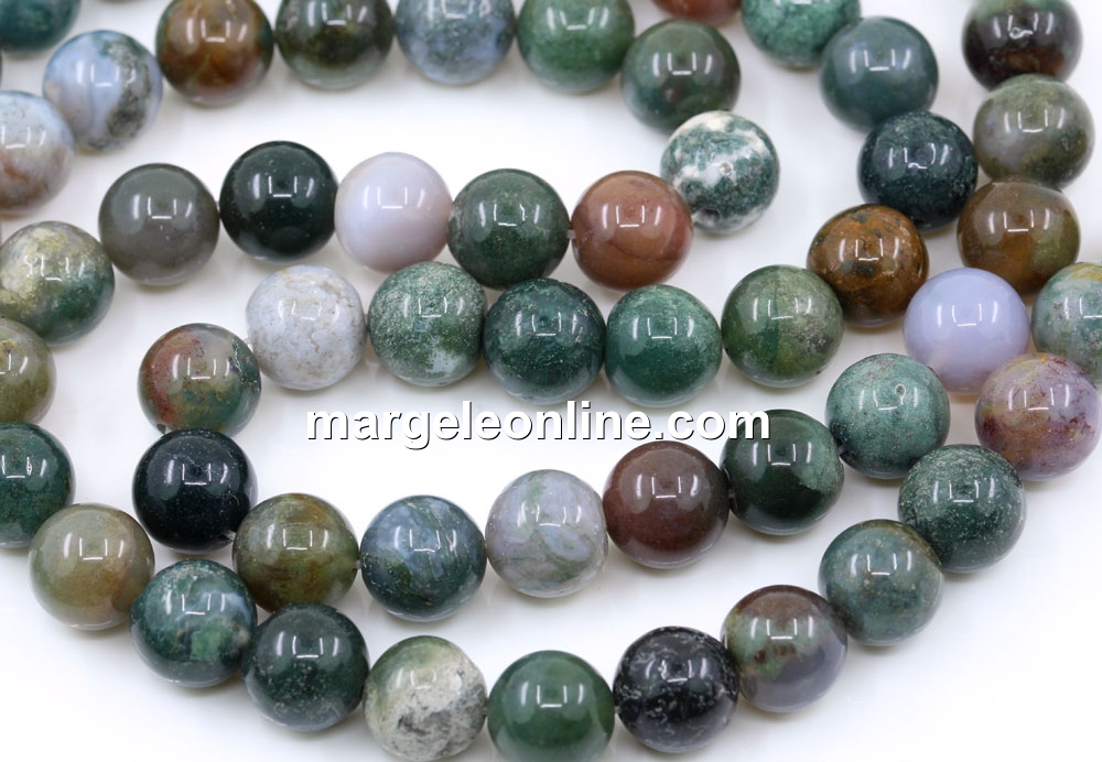 Margele agate indiene, forma: rotund, marime: 10mm, lungime sirag: 37-38cm. Pretul este pentru un sirag fara sistem de inchidere.