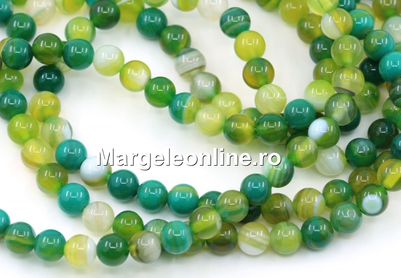 Margele Agate lace dantelate, rotund, verde, 6.5mm - x40buc